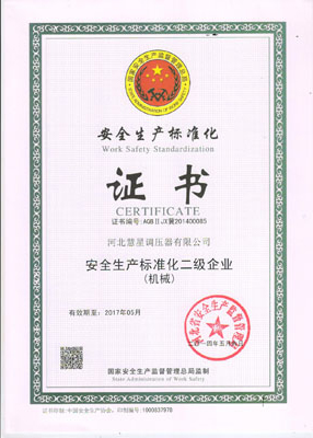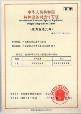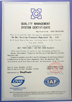 主導(dǎo)產(chǎn)品切斷式煤氣調(diào)壓器通過河北省經(jīng)濟委員會、省標(biāo)準(zhǔn)計量局認(rèn)可,獲得采用國際準(zhǔn)認(rèn)可證書